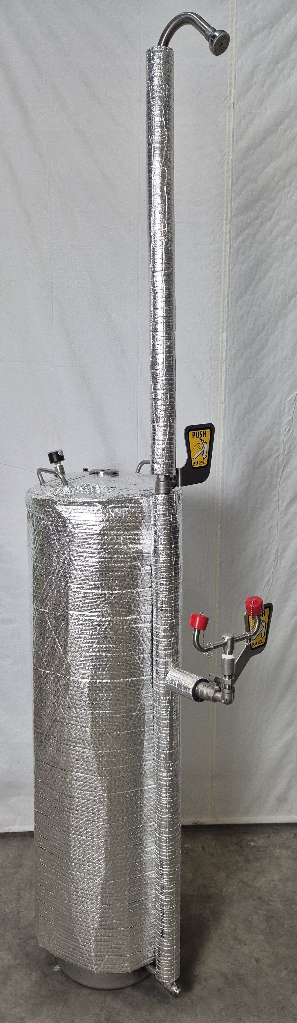 This is not a Safety Shower as it does not provide 76LPM of water to spray the body for 15 minutes. The Shower head/body wash/drench hose is referred to as supplementary equipment to be used in a first response emergency treatment at the site.